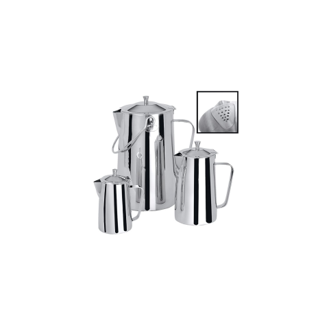 Itt a kávé- és ital szolgáltatás témája nagy hangsúlyt kap! Kávéfőzőktől és barista eszközöktől kezdve a teázási kiegészítőkön át a palackhűtőkig és üvegkancsókig.18/10-es nemesacélból készült, fényes felülettel, hajtós fedéllel és belső szűrővel, a fogantyúk tompa rögzítéssel - ezért abszolút higiénikus, extra nehéz minőség Tartalom: 3 l Magasság: 250 mm Anyag: Nemesacél