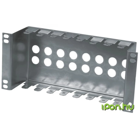 Conteg 16/24 portos 19” vagy 10”-os fém patch panel keret, aljzatok nélkül. Kompatibilis az Intellinet keystone jack FTP aljzattal patch panel betét behelyezése után.