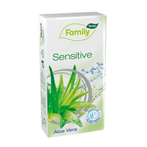 Tento Family Sensitive Aloe Vera papírzsebkendő (10 db) A Tento Family Sensitive Aloe Vera papírzsebkendő a legjobb választás mindennapi használatra, különösen azok számára, akik érzékeny bőrtípussal rendelkeznek. A 3 rétegű zsebkendők rendkívül puha tapintásúak, miközben erőteljes nedvszívó képességgel rendelkeznek, hogy megkönnyítsék a napi higiéniai rutint. Az Aloe Vera hozzáadott kivonatának köszönhetően nemcsak tisztítanak, hanem ápolják is a bőrt.