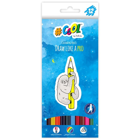 Színes ceruza COOL by Victoria - háromszögű, jobb- és balkezes, ergonomikus markolat, papír felületekre, hagyományos színek, puha ceruzabél 2,9 mm átmérővel, papír csomagolás, 12 ceruza a csomagban Eme COOL by Victoria színes ceruza mindenkit elrepít a gazdag színek és a határtalan képzelet világába. Háromszög formája nagyban hozzájárul kényelmes használatához. Ez a legkisebbeknek való színes ce