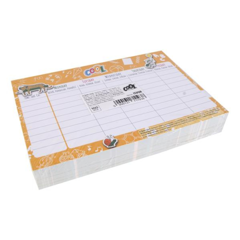 Kétoldalas papír órarend színes mintákkal iskolásoknak, pedagógusoknak. Egyik oldala sárga, a másik oldala zöld. -átlátható heti beosztás hétfőtől péntekig -az órák kezdési ideje szabadon írható be -praktikus, hiszen félévkor elég megfordítani és az új órarendet a másik oldalára felírni -íróasztalon, fali parafatáblán is jól látható, használható -méret: A5 -anyag: 250g ofszet papír Gyártó/első EU forgalmazó elérhetősége: Corwell Kft 2120 Dunak