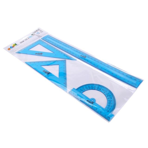 A 4 darabos vonalzókészlet minden szükséges eszközt tartalmaz, így a gyerekek az egyenes és a háromszög vonalzókkal szerkeszthetnek, párhuzamosokat és merőlegeseket húzhatnak, míg az egyéb szögek pontos kiméréséhez használhatják a készletben található szögmérőt is. A szett tartalma: -1 db 30 cm-es vonalzó -1 db 35°-os, 14 cm-es számskálájú vonalzó -1 db 45°-os, 10 cm-es átfogójú vonalzó -1 db 180°-os, 10 cm-es szögmérő Minden darabja átlátszó, hajl