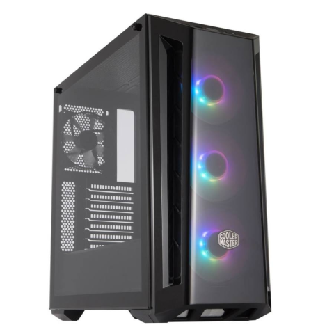 Számítógépház - ATX, mATX (Micro ATX), mITX (Mini ITX), eATX (Extended ATX) és SSI-CEB, 6× 2,5", 2× 2.5"/3.5", USB 3.2 Gen 1, fejhallgató és mikrofon, 1x120mm és 3x120mm ARGB, processzor hűtő max. magassága 165 mm, videókártya max. hossza 410 mm, tápegység nélkül, edzett üveg oldalfal A kiváló Midi Tower nagyságú Cooler Master MasterBox MB520 ARGB számítógépház vonzó dizájnt nyújt, amelyet fekete szín ural. Ezt acél szerkezeten alkalmazták. A midi torony mére
