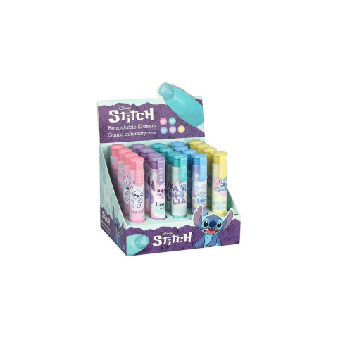 Praktikus visszahúzható radír tollszerű kivitelben, aranyos, vidám, mosolygós Stitch mintákkal.