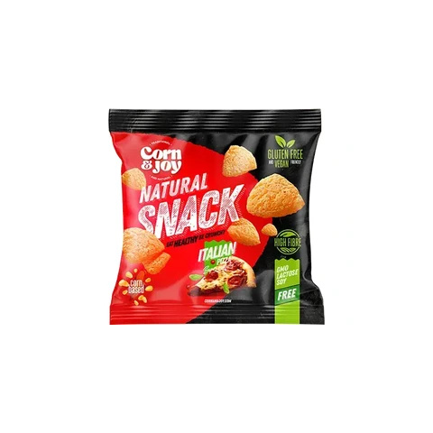 Pizza ízesítésű, gluténmentes kukorica snack.