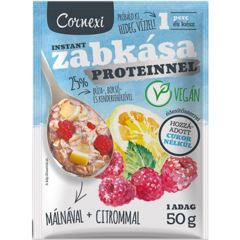 1 kép CORNEXI Cornexi málnás-citromos protein zabkása édesítőszerrel, vegán 50g