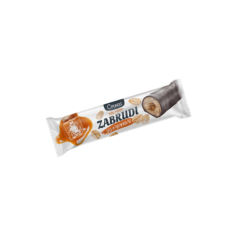 Sós-karamellás töltelékkel töltött zabrúd kakaós bevonattal, cukorral és édesítőszerrel. Lágy, krémes, nem igényel hűtést.