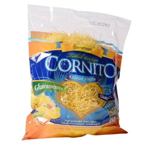 Cornito gluténmentes tészta cérnametélt 200 g A Cornito száraztészta kiváló minősége a receptúrának, és a kiváló olasz gépeknek köszönhető. A tészta íze közelít a durumtészta ízéhez, tehát élvezetes, színe a kukorica alpanyagnak köszönhetően szép sárg