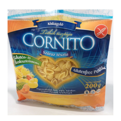 Cornito gluténmentes kiskagyló tészta 200g Gluténmentes, szójamentes, tojásmentes, laktózmentes, tejmentes, búzamentes, rizsmentes termék