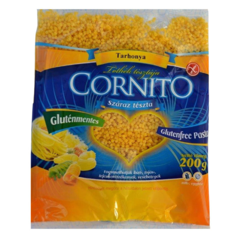 Cornito gluténmentes tarhonya tészta 200 g Gluténmentes, szójamentes, tojásmentes, laktózmentes, tejmentes, búzamentes, rizsmentes termék. A Cornito száraztészta kiváló minősége a receptúrának, és a kiváló olasz gépeknek köszönhet