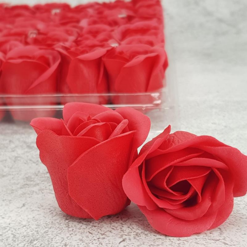 Piros színű, illatos szappanrózsa fejek. Felhasználási javaslatok: kézmosáskor fürdővízben zuhanyzáskor lábvízben Az illatos szappanrózsa meghitt hangulatot varázsol a fürdőkádba, és ideális kézmosáshoz is. Zuhany és fürdés közben testünket moshatjuk me
