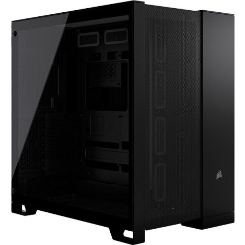 Számítógépház - ATX, mATX (Micro ATX) és mITX (Mini ITX), 2× 3,5", 2× 2,5", USB 3.2 Gen 1, usb-c, fej-/fülhallgató/mikrofon és USB 3.2 Gen 2, processzor hűtő max. magassága 200 mm, videókártya max. hossza 400 mm, tápegység nélkül, edzett üveg oldalfal A nagyszerű Midi Tower méretű Corsair 6500D AIRFLOW Black PC ház érdekes kidolgozást biztosít, amelyet fekete szín határoz meg. Ezt acél szerkezeten használták fel. A midi torony típusú PC házat nagy
