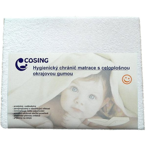 Matracvédő huzat - mérete 60 × 120 cm, vízhatlan, gumírozással a széleken, anyaga: pamut és bársony The COSING hygienic protector offers protection for both mattresses and babies. Thanks to it, the mattress is protected if an accident occurs and the baby' s diaper leaks. It absorbs moist