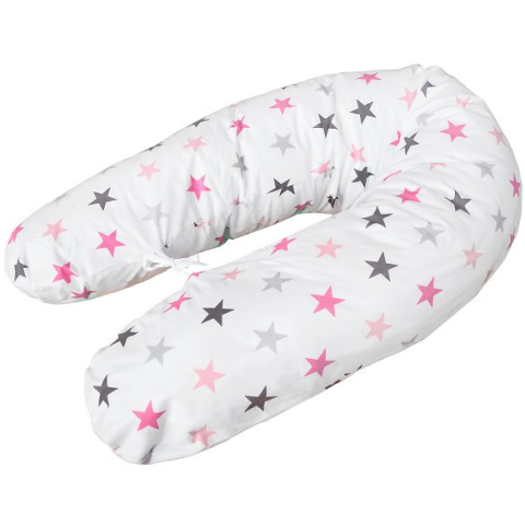 Szoptatós párna - alvásra alkalmas, patkó alakú, hipoallergén, pozicionálható, mosható huzat, pamut bevonó anyag, üreges szál töltőanyag, csillagos motívum, fehér, rózsaszín és szürke kivitel A kiváló minőségű COSING patkó alakú szoptatós párna hosszú élettartamú, puha és könnyű üreges szállal van töltve. Külső, finom tapintású, lélegző pamut anyaga gondoskodik a maximális kényelemről, eme