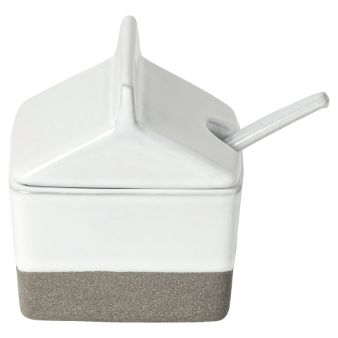 A Costa Nova Festa cukortartó fedővel és kanállal minőségi kőkerámiából készült, amely ütésálló. Magassága 82 mm, átmérője 75 mm. Ez a fehér cukortartó bármely konyhába és étkezőbe illik. A Costa Nova márka kiváló minőségéről és dizájnjáról ismert.