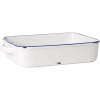 Kőagyag 22x17 cm méretű sütésre alkalmas tál kék sávval a perem szélén. Öntött megjelenésű nem szokványos kollekció. A Rad Antoinette bemutatja a modern dizájnú retró stílust. A zománcnak köszönhetően a tál szépen csillog.