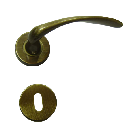Ajtókilincs cz 45mm súrolt antik -rozettás -bejárati ajtóhoz -réz alapanyag -antikolt felület -lakkozott