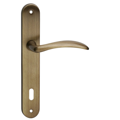 Ajtókilincs nz 55mm súrolt antik -zártávolságú beltéri ajtóhoz -réz alapanyag -antikolt felület -lakkozott