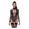 Obsessive B112 - ujjatlan, angyalszárnyas, nyitott necc body (fekete)