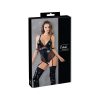Fedezd fel a szenvedély és a csábítás új dimenzióját ezzel a dögös, harisnyatartós body-val, amely beépített kézkötözőivel és fényes, áttetsző anyagával garantáltan felkorbácsolja a vágyakat!