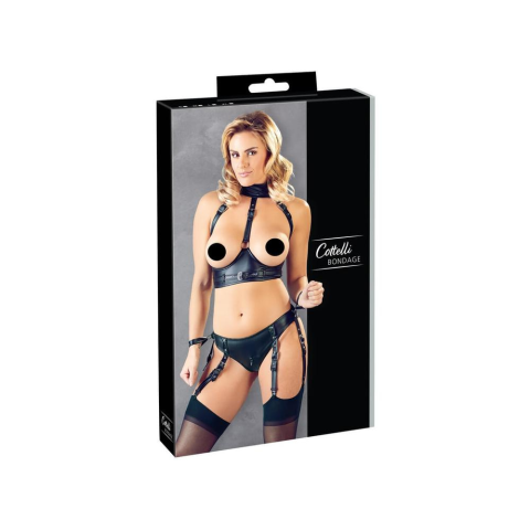 Cottelli Bondage - fényes mellemelő szett bilinccsel (fekete)
