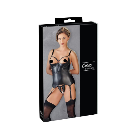 Cottelli Bondage - fényes, mellemelős felső kézrögzítőkkel (fekete)
