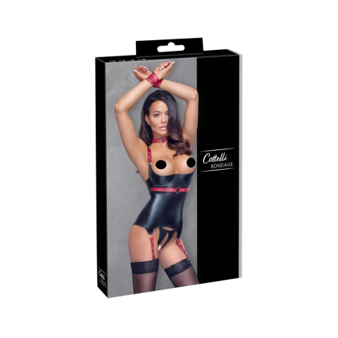 Cottelli Bondage - Fényes, mellemelős felső nyakörvvel (fekete)