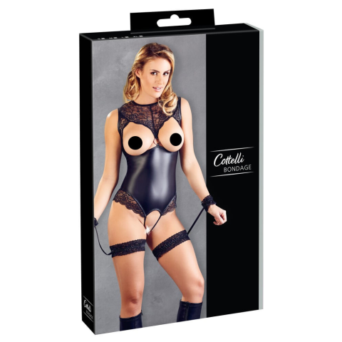 1 kép Cottelli Bondage - fényes nyitott body kézrögzítőkkel (fekete)