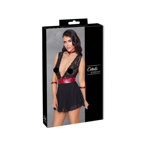 Cottelli Bondage - nyakpántos csipkés babydoll (fekete)