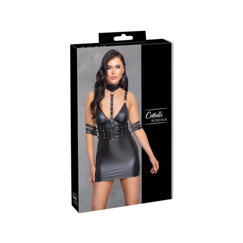 3 kép Cottelli Bondage - nyakpántos fényes miniruha (fekete)