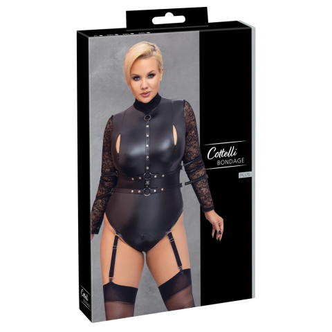 1 kép Cottelli Collection Cottelli Bondage Plus Size - csipkésujjú body (fekete)