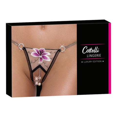1 kép Cottelli - luxus, hímzett liliomos tanga (fekete-fehér)