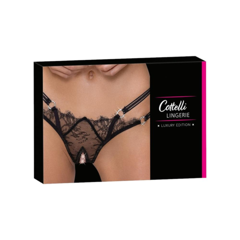 Cottelli - luxus, nyitott, gyűrűs tanga (fekete) bugyi, női alsó
