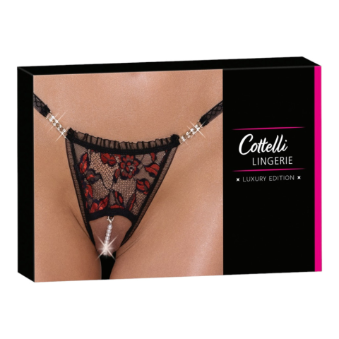 2 kép Cottelli - luxus, rózsás gyöngyös tanga (piros-fekete)