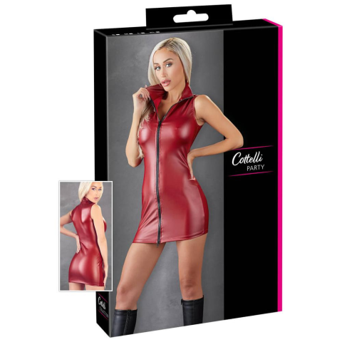 1 kép Cottelli Party - cipzáros, ujjatlan fényes miniruha (bordó)