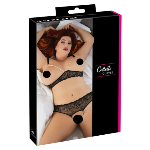 1 kép Cottelli Plus Size - csipkés gyöngyös melltartó szett (fekete)