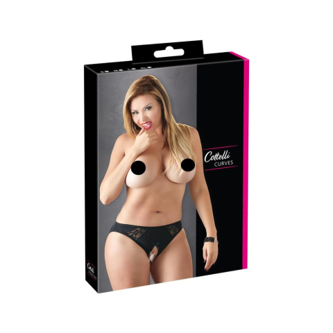 Cottelli Plus Size - csipkés, nyitott alsó (fekete)