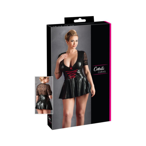 1 kép Cottelli Plus Size - fényes ruha piros fűzővel (fekete)
