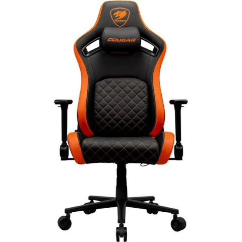 Gamer szék - huzat anyaga szintetikus bőr,, deréktámasz és fejtámla, magasság, felső rész elforgatása és mozgatás jobbra/balra kartámasz, egyensúlyozós és fém szerkezet, ülés töltőanyaga hideg hab (HR hab), fém lábak, műanyag kerekek, fekete és narancssárga kivitel, terhelhetősége 120 kg A lelkes gamerek felszereléséből egy igazi gamer szék sem hiányozhat. A profi Cougar Defensor egy gondosan megtervezett felépítésű, minőségi modell, amely sokkalta komforto