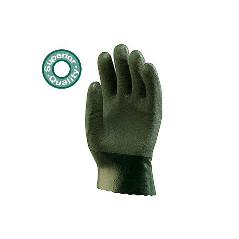 Vysol 27cm csúszásgátlós polimer-neoprén, vegyszerálló védőkesztyű Cikkszám: 3718 - 27 cm hosszú - pamutra kétszer mártott zöld polimer - sav-, lúg-, olaj- és vegyszerálló - mikroorganizmusok elleni védelem - forró folyadékban is használható - é