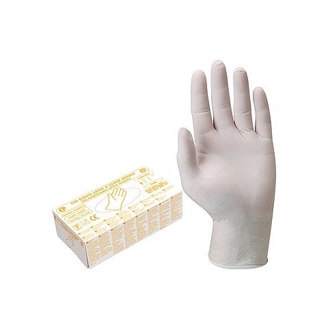 Latex egyszerhasználatos vizsgálókesztyű, púderozott 100 db Cikkszám: 5806 - egészségügyi, egyszerhasználatos latex púderozott belsővel - mindkét kézen használható, rugalmas anyag - 0,125 mm vastag, 23 cm hosszú - AQL: 1,5 - méret: 6, 8, 10 és 12-es E