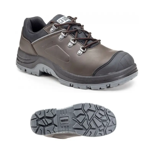 9FLL3700 FLINT S3 SRC építkezési védőlábbeli • barna vízlepergető marhabőr felsőrész • acél lábujjvédő és acél átszúrás elleni talplemez • lélegző és nedvszívó hálós belső bélés • szivacsos szártető és nyelv, illetve fém fűzővezetők • antisztatikus, SRC