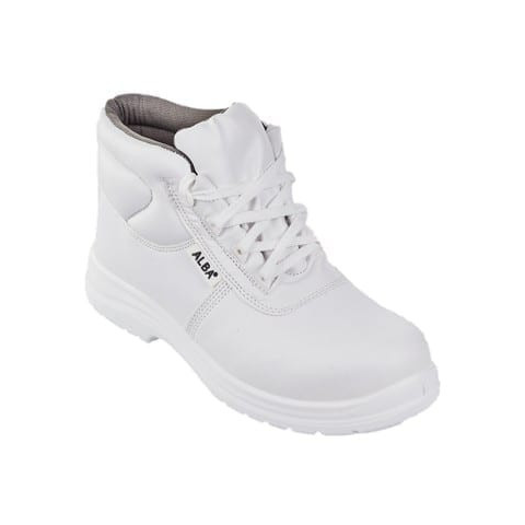 Folyadékoknak jobban ellenálló, fehér mikroszálas felsőrész • kiváló szellőző, vízgőzáteresztő tulajdonságok • kompozit (CK) lábujjvédő • antisztatikus, olajálló, hajlékony, kétrétegű, fehér PU talp, ütődéselnyelő sarokkal • nedves acél és kerámia felület