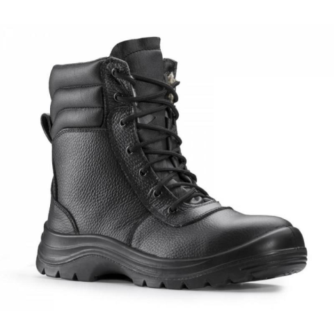 végig fűzős magasszárú fekete, víztaszító szín marhabőr felsőrészacél orrmerevítő és talplemez talpátszúrás ellenantisztatikus, olajálló, SRC csúszásmentes, kétrétegű PU talpvégig izotermikus téli szőrmebélésselhideg elleni minősítés (CI)szivacsos szártető és nyelv, megerősített sarok &