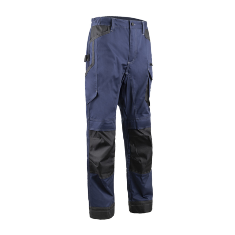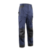 • 270 g/m2 vastag, 60% pamut + 40% poliészter kevertszálas alapanyag • kopásálló Oxford PES betétekkel megerősített részek: térd, lábszár alja, zsebeknél, stb. • regular szabású, divatos formai kialakítás díszvarrással • övbújtatók, biztonsági tripla varr