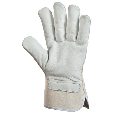 FEHÉR BŐRKESZTYŰ: • puha, szürke, 1,1 mm vastag színmarhabőr tenyér nagy igénybevételre • fehér vászon kézhát és mandzsetta • artéria-, hasítékbőr köröm- és ökölcsontvédő • pamut tenyérbélés • MÉRET: 10-es • CSOMAGOLÁS: 120/12 • EU szabvány: EN420, EN388: