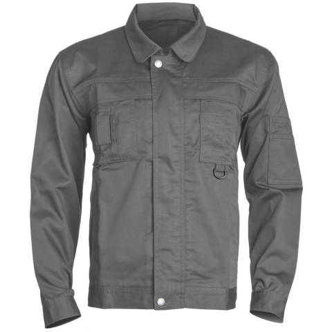 CLASS SZÜRKE KABÁT:285 g/m? vastag, lánckötésű, 35% természetes pamutvászon, 65%kopásálló poliészteregyenes fazonú, kényelmes ruhák nagy szakítószilárdságú, erős anyagbólpraktikus zsebek, kulcstartók és mobil kiegészítők (térdeplőbetét)kabát: dzsekifazonú kabát rejtett húzózárral, patentos plusz tépőzáras fedővelállítható, patentos derék és mandzsettakét oldal-, két kar-, három rávarrt-, egy telefon - és egy hosszú hátsó tároló zsebszín: fe