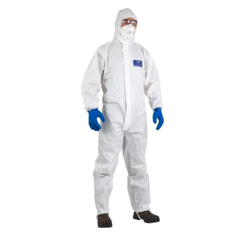COVERPRO 5M30 MUNKAVÉDELMI OVERALL, FEHÉR fehér színű, bolyhosodás mentes mikroporózus filmréteggel bevont, kapucnis, 65 g/m2 vastag, szilikon mentes polipropilén overall - véd porok, fröccsenő folyadékok és vegyszerek, illetve biológiai kockázatok é