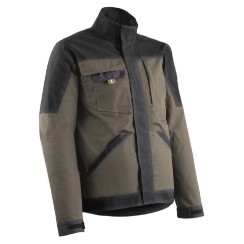 Ripstop: 60% pamut / 40% PES - 280g/m² + poliamid/sztreccs betétek + Oxford 600D - dohány/karamell színben Hosszított hátrész 5 zseb Álló gallér Fedett YKK cipzár Tépőzárral állítható mandzsetta Sztreccs zóna hátul vállrésznél Fényvisszaverő díszcsíkok