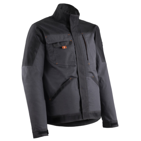 Ripstop: 60% pamut / 40% PES - 280g/m² + poliamid/sztreccs betétek + Oxford 600D - dohány/karamell színben Hosszított hátrész 5 zseb Álló gallér Fedett YKK cipzár Tépőzárral állítható mandzsetta Sztreccs zóna hátul vállrésznél Fényvisszaverő díszcsíkok
